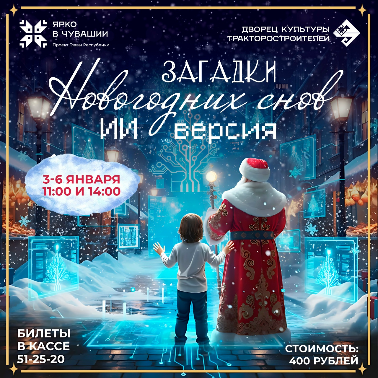 С 3 по 6 января во Дворце культуры Тракторостроителей пройдут новогодние представления для детей «Загадки новогодних снов: ИИ версия» (6+).