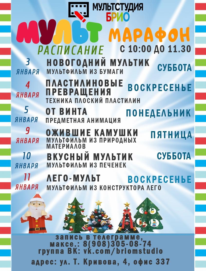 3, 4, 5, 9, 10 и 11 января мультстудия БРИО приглашает на МУЛЬТМАРАФОН (6+).