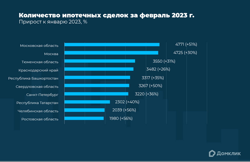 Топ-10 регионов по количеству ипотек в феврале 2023 года