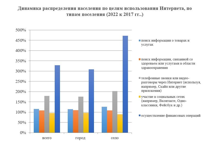 Согласно анализу экспертов РСХБ, за последние 5 лет в 4,7 раза (472% от показателей 2017 года) выросла доля сельского населения, осуществляющего финансовые операции через интернет, а вот интерес к социальным сетям, наоборот, уменьшился: доля сельчан, заходящих в соцсети для общения, снизилась на 10% от показателей 2017 года. Кроме того, сельчане за последние пять лет стали на 27% чаще искать в интернете информацию о товарах и услугах и на 8% чаще - информацию о здоровье. Также в 2 раза выросло использование мессенджеров для звонков и видеосвязи (203% от показателей 2017 года).