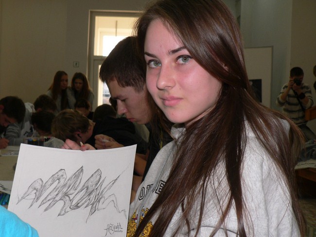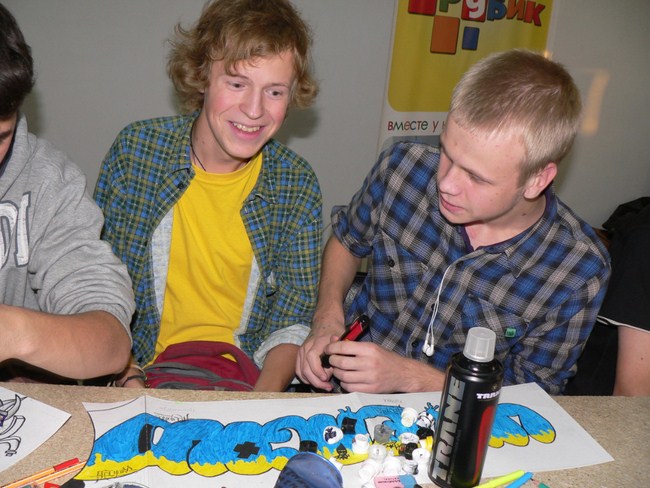 Вместо баллонов с красками — карандаши и маркеры. А вместо серых стен — чистые листы бумаги. Поэтому правильнее назвать мероприятие конкурсом эскизов граффитчиков, что, кстати говоря, не помешало участником продемонстрировать свой талант и владение мастерством рисования на стенах