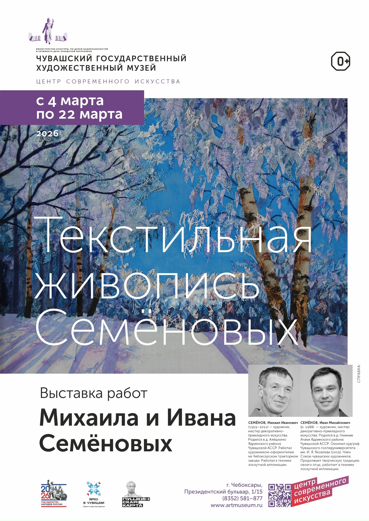 Обзор выставок, проходящих сегодня в Национальном и Художественном музеях, музее Современного искусства и чувашской вышивки, а также других выставочных залах Чебоксар