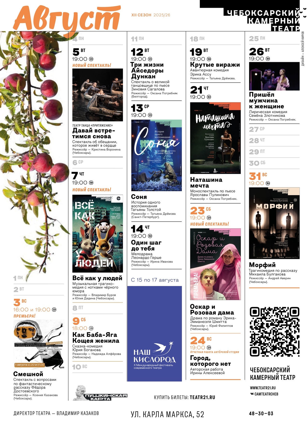 Расписание спектаклей и театральных премьер, которые можно посмотреть чебоксарцам и гостям столицы Чувашии в декабре 2025 и январе 2026