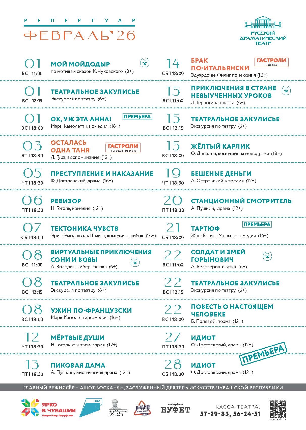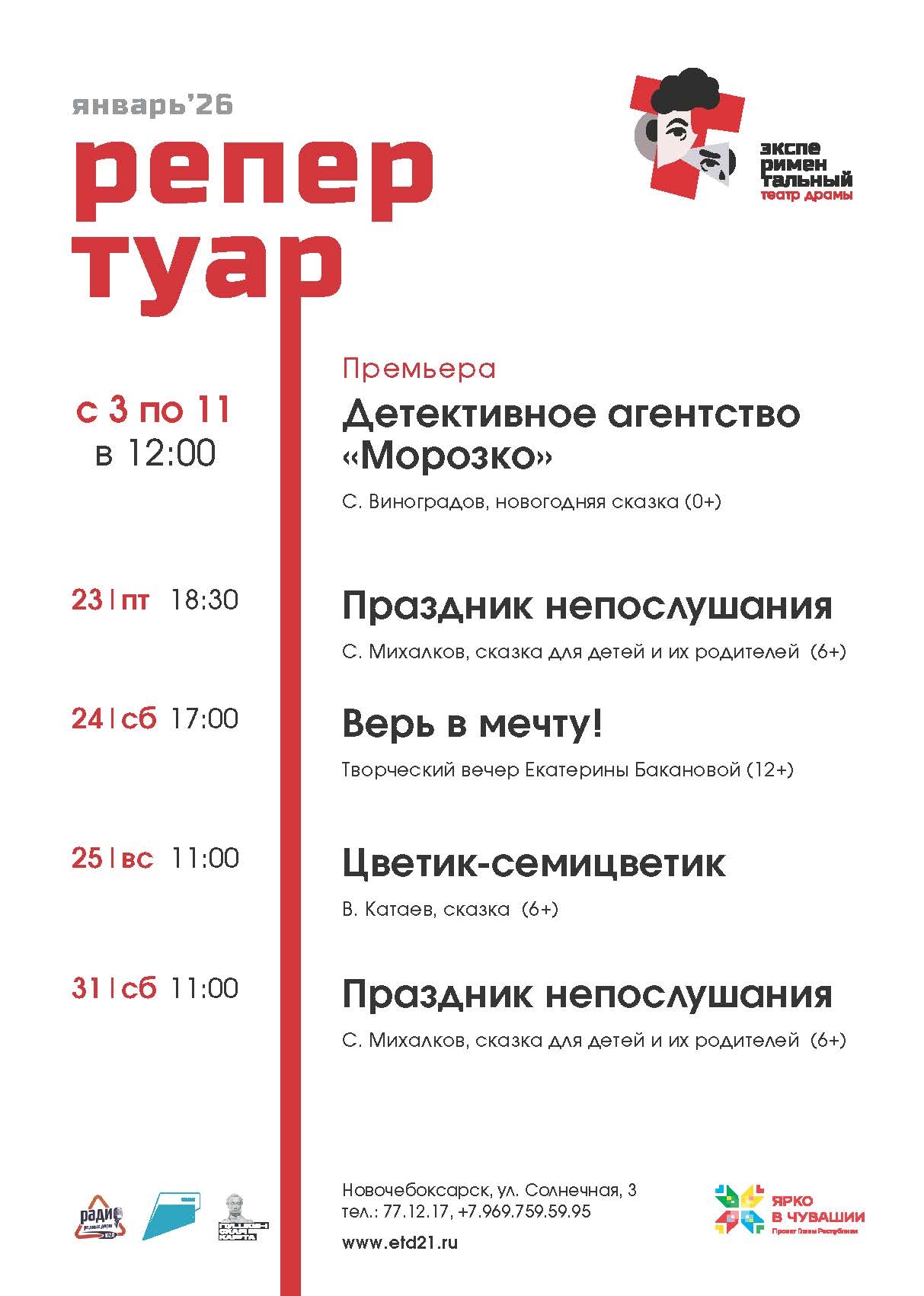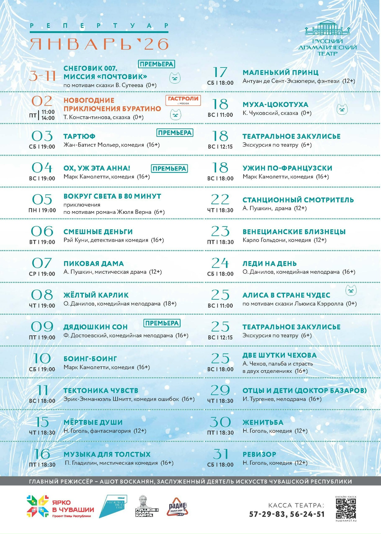 Расписание спектаклей и театральных премьер, которые можно посмотреть чебоксарцам и гостям столицы Чувашии в январе 2026