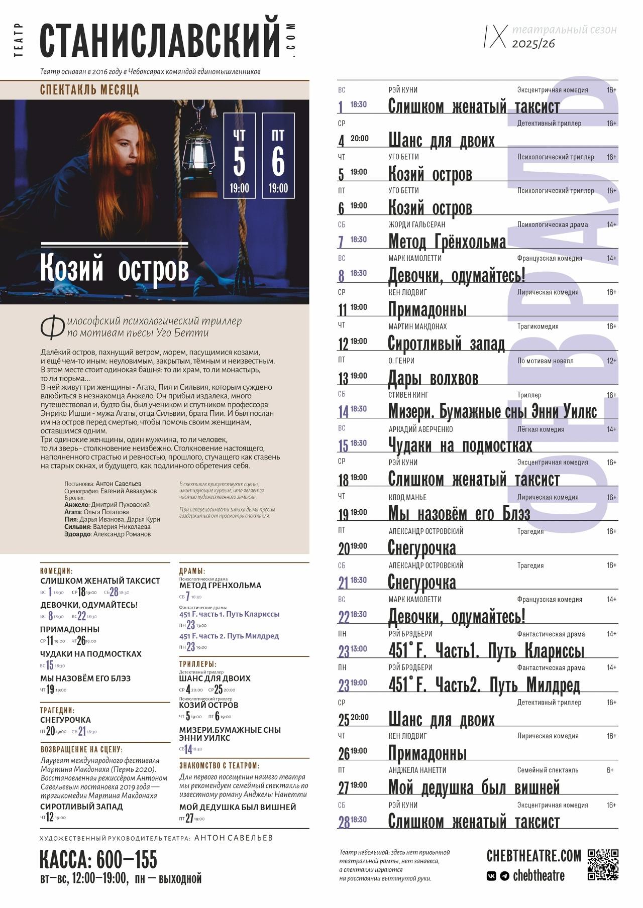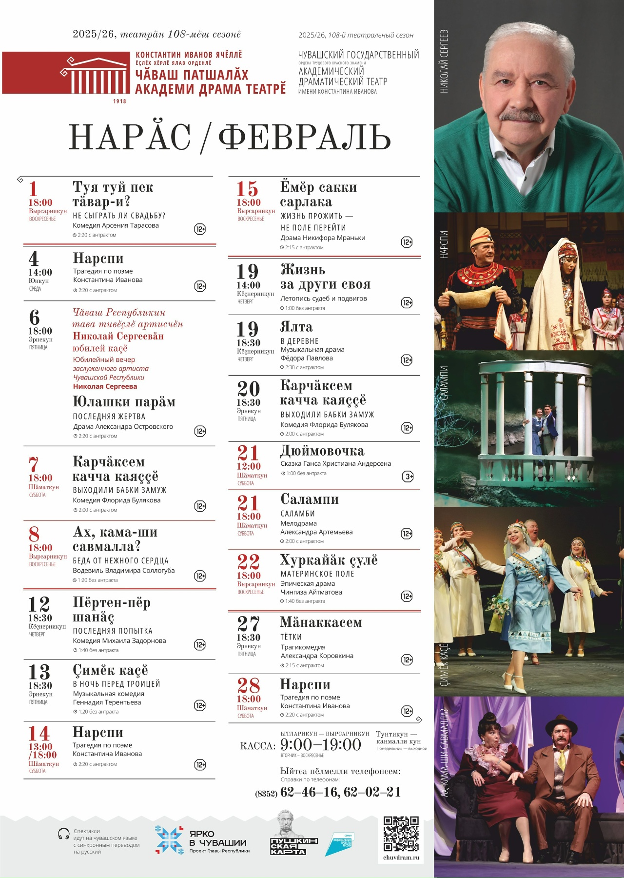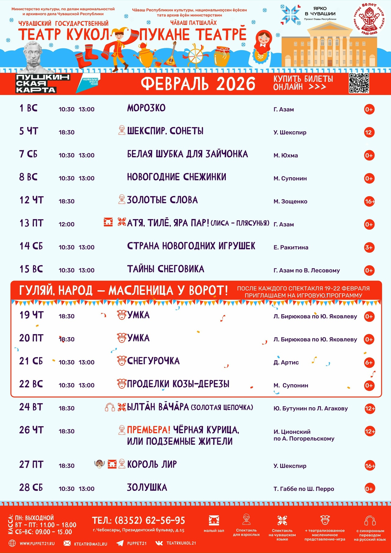 Расписание спектаклей и театральных премьер, которые можно посмотреть чебоксарцам и гостям столицы Чувашии в январе 2026