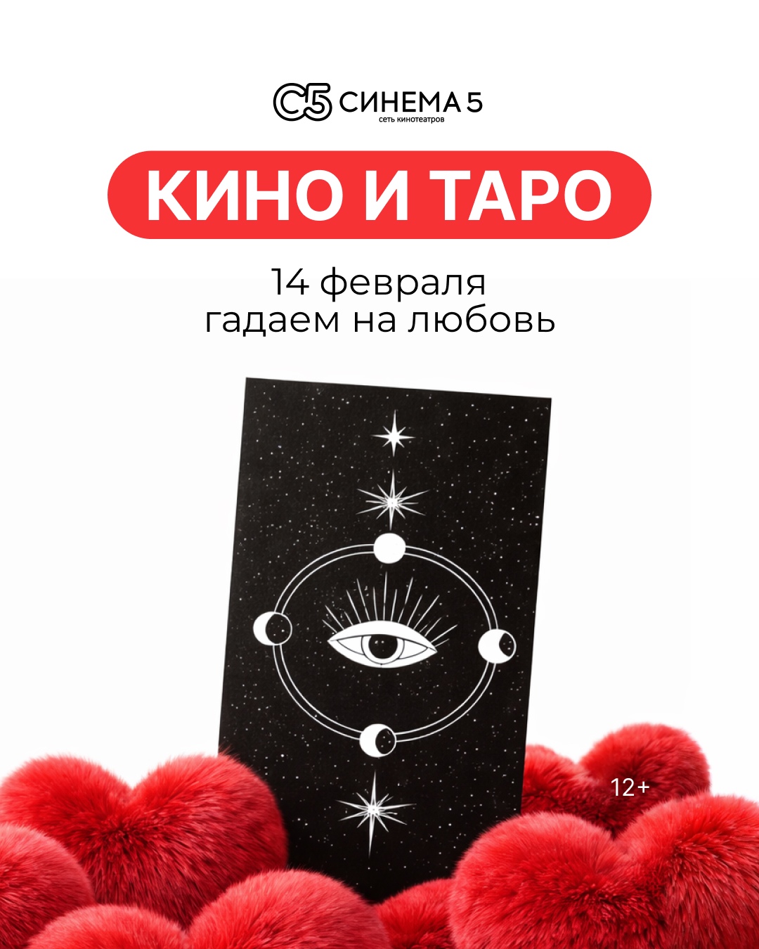 Приходи в День всех влюбленных в кинотеатр, тяни свою карту Таро и получи кино-пророчество. Немного судьбы, вкусный попкорн в руках и отличный повод для свидания.