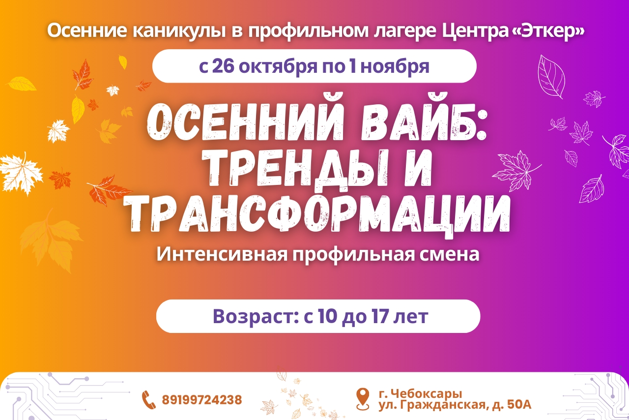 С 26 октября по 1 ноября Центр одарённых детей «Эткер» приглашает школьников от 10 до 17 лет на осеннюю программу (12+).
