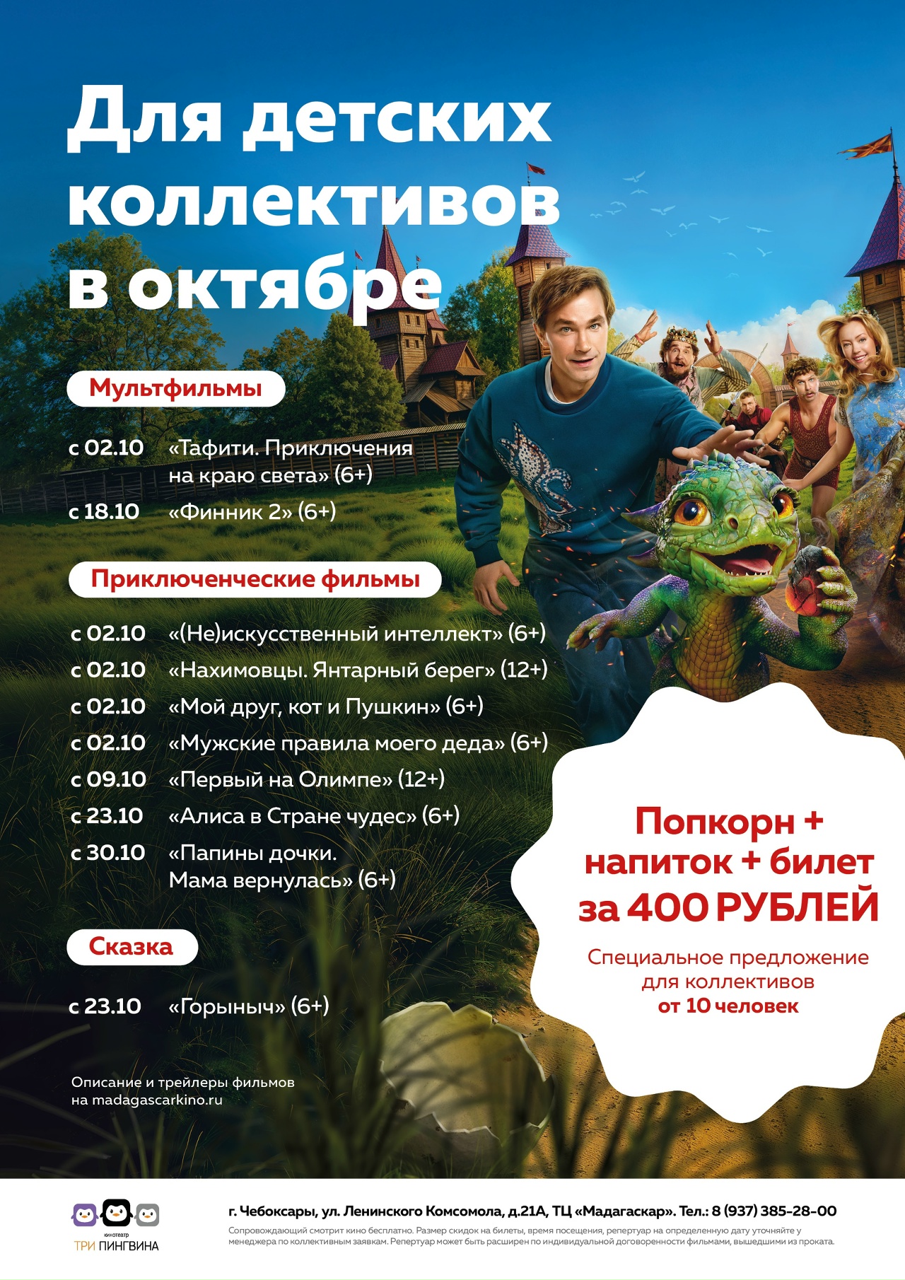 В октябре кинотеатр «Три пингвина» приглашает школьников на мультфильмы и кинофильмы для детей (12+).