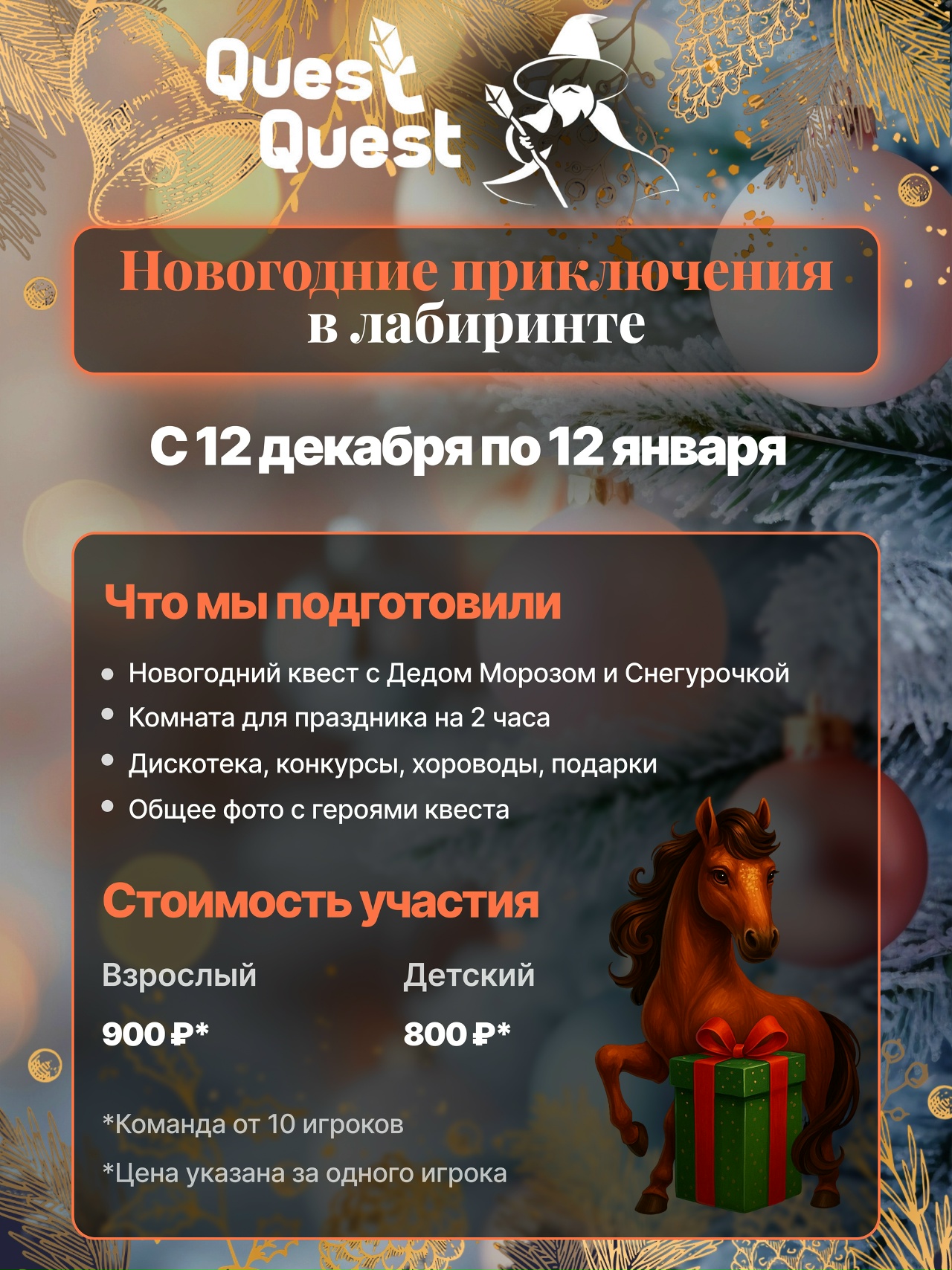 С 12 декабря по 12 января команда «QuestQuest» приглашает на новогоднюю программу в «Лабиринте» (6+).