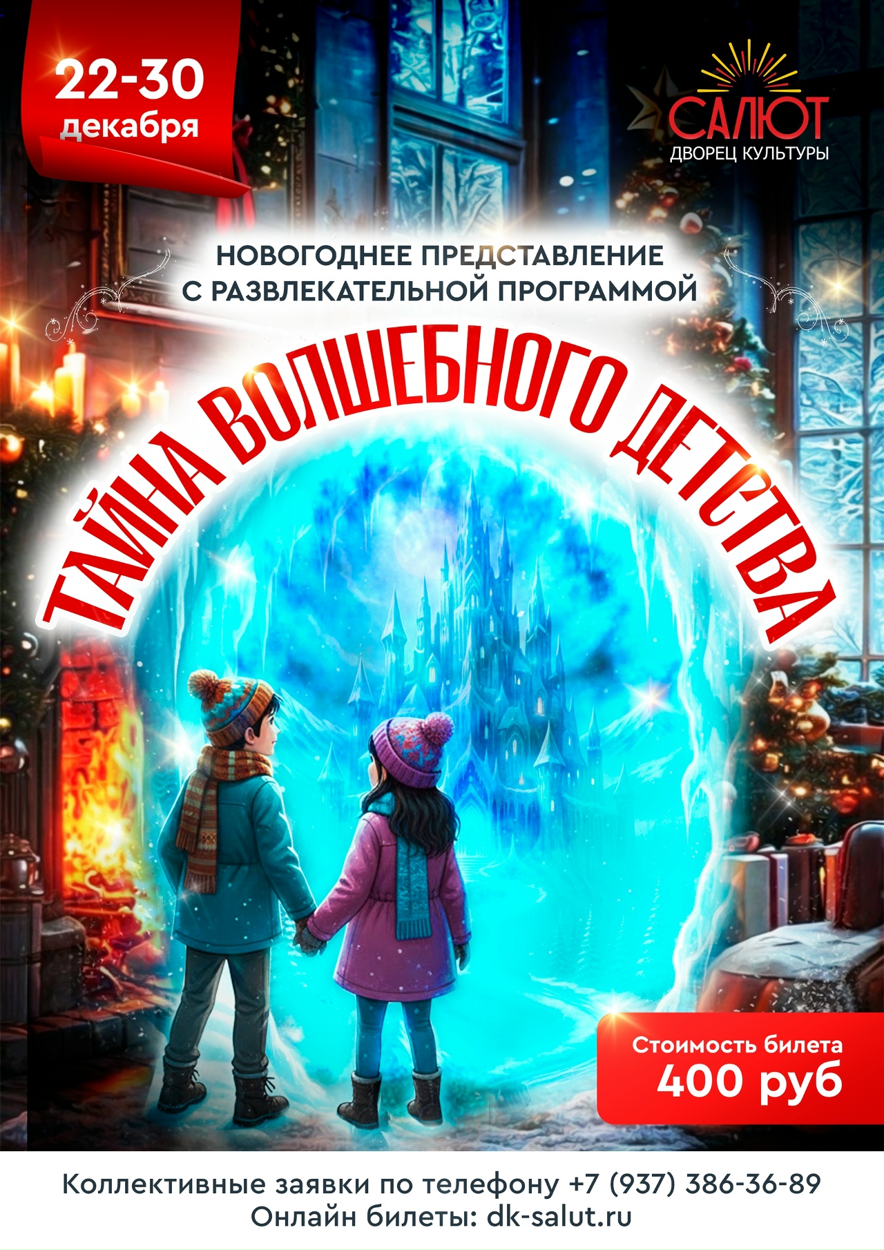 С 22 по 30 декабря во Дворце культуры Салют пройдут новогодние представления для детей «Тайна волшебного детства» (6+).