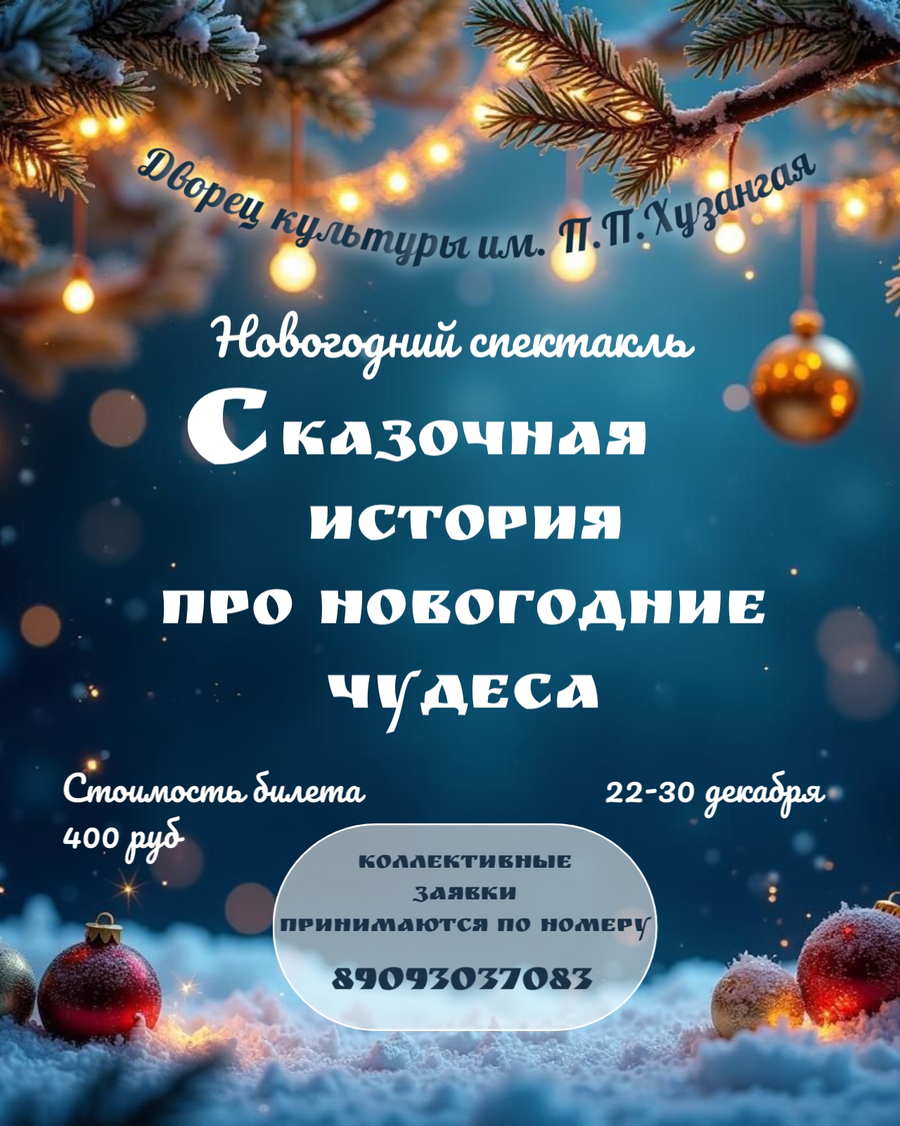 С 22 по 30 декабря ДК Хузангая приглашает на новогодний спектакль «Сказочная история про новогодние чудеса» (6+).