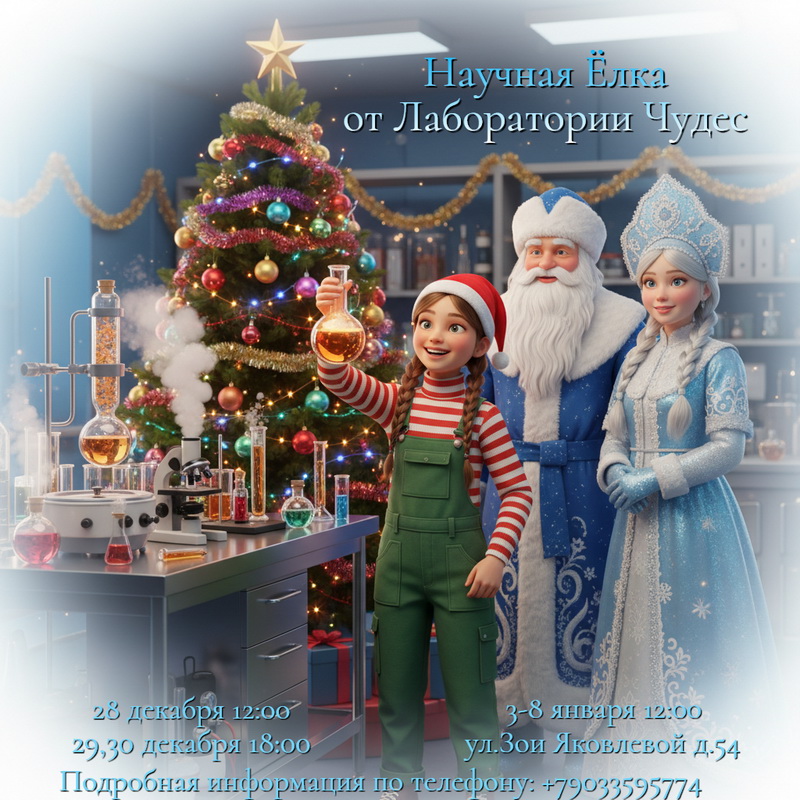 С 28 по 30 декабря и с 3 по 8 января «Лаборатория чудес» приглашает на Научную Елку – самый волшебный и познавательный праздник зимы (0+).