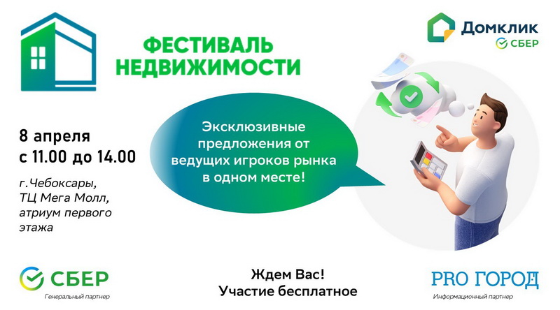 Уже в эту субботу 8 апреля на одной площадке соберутся крупнейшие застройщики, агентства недвижимости и строительные центры Чувашии. Первый в Чувашии Фестиваль недвижимости пройдет с 11 до 14.00 в атриуме первого этажа ТЦ Мега Молл. Жители региона смогут в одном месте получить консультацию от ведущих игроков рынка и получить эксклюзивные предложения. Каждый час гости фестиваля получат возможность стать обладателями умной колонки SberBoom mini, а также полезных сувениров для дома.