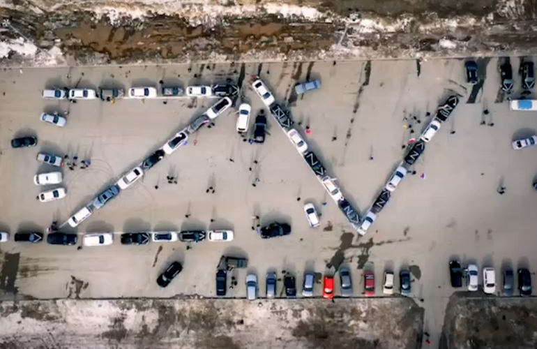 В патриотической акции приняло участие более 70 автомобилей с наклеенными символами «Z» и «V». Сначала они собрались на площадке перед Театром оперы и балета.