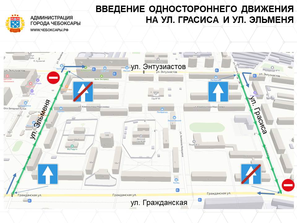 На всем протяжении движение будет односторонним, поэтому здесь запретят остановку и стоянку транспорта, а на перекрестке улиц Энтузиастов и Грасиса установят светофор.