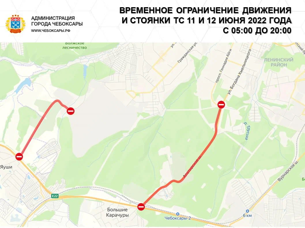 Ограничения движения и стоянки транспорта будут действовать от перекрестка улиц Богдана Хмельницкого с проспектом Айги до ж/д переезда у деревни Большие Карачуры на трассе М-7, а также на дороге от Яуш до завода Чапаева.