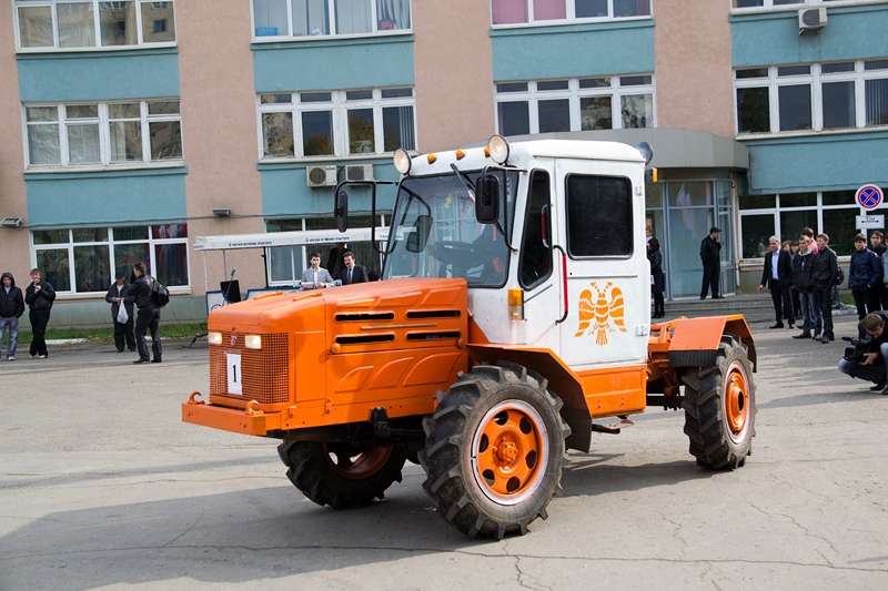 Трансформер, по словам изобретателя, может набрать скорость до 15 км/ч, это, конечно, мало, но не в этом ее главное предназначение. Ведь многофункциональный трактор вместил в себя и кран, и косилку, и копательное приспособление. Старожил конкурса не первый год участвует в таком мероприятии, и в его послужном списке есть бульдозер, самосвал, косилка, Газ-52, также он ставил кабину на Газ-51. «Я с малых лет любил конструировать, а потом вышел на пенсию и времени на любимое дело стало больше», — рассказал Валерий Пугачев перед тем, как продемонстрировать своего железного коня. И вот изобретатель уже в кабине трактора, наворачивает круги на демонстрационной площадке. Конечно, асфальт такой с/х технике не товарищ, ему бы невспаханную землю, тогда бы он показал себя в деле. Пугачев получил диплом 1 степени и 1000 рублей в номинации «За активность».