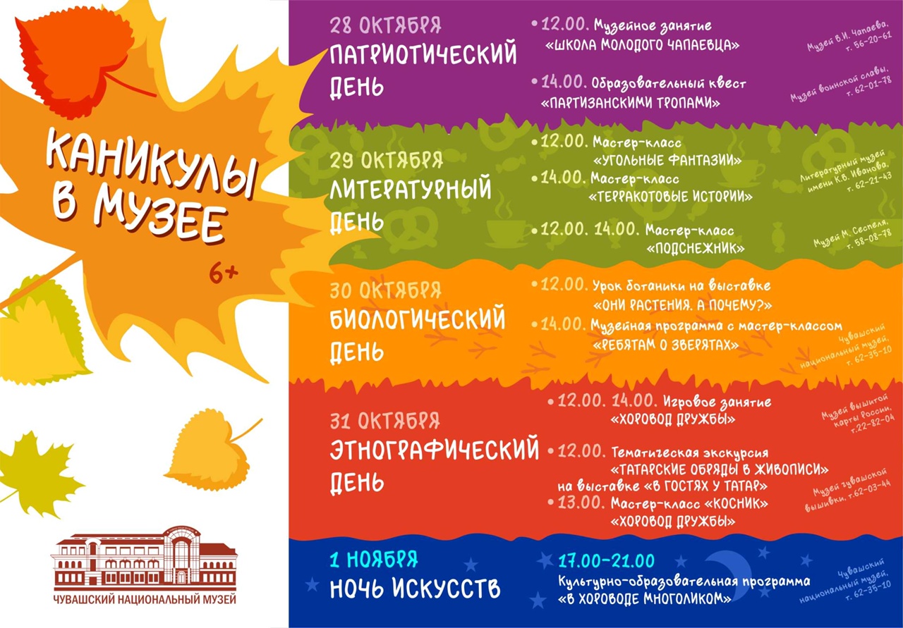 С 28 октября по 1 ноября Чувашский национальный музей приглашает школьников на тематические дни в период осенних каникул (6+).