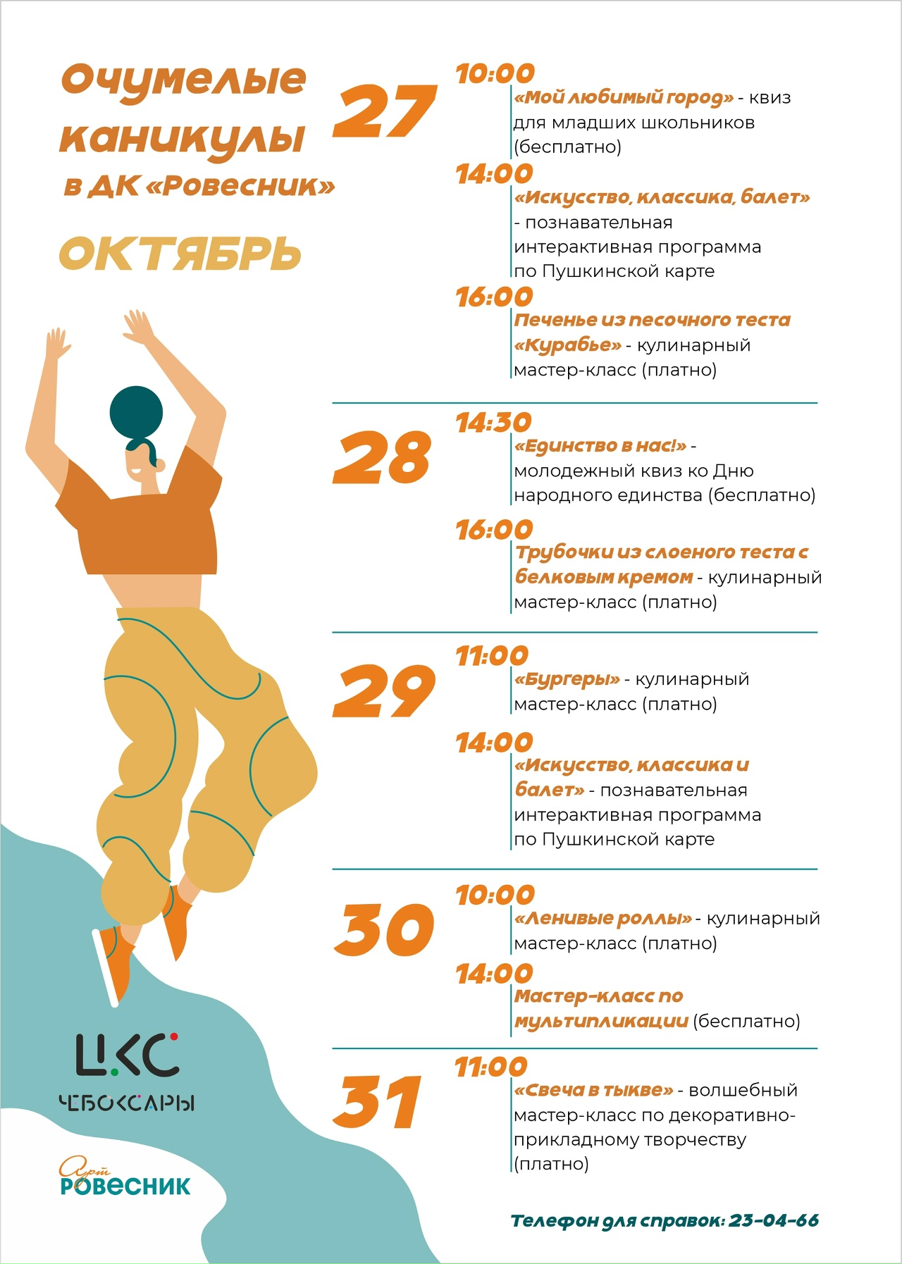 С 27 по 31 октября ДК «Ровесник» приглашает школьников на Очумелые каникулы (6+).