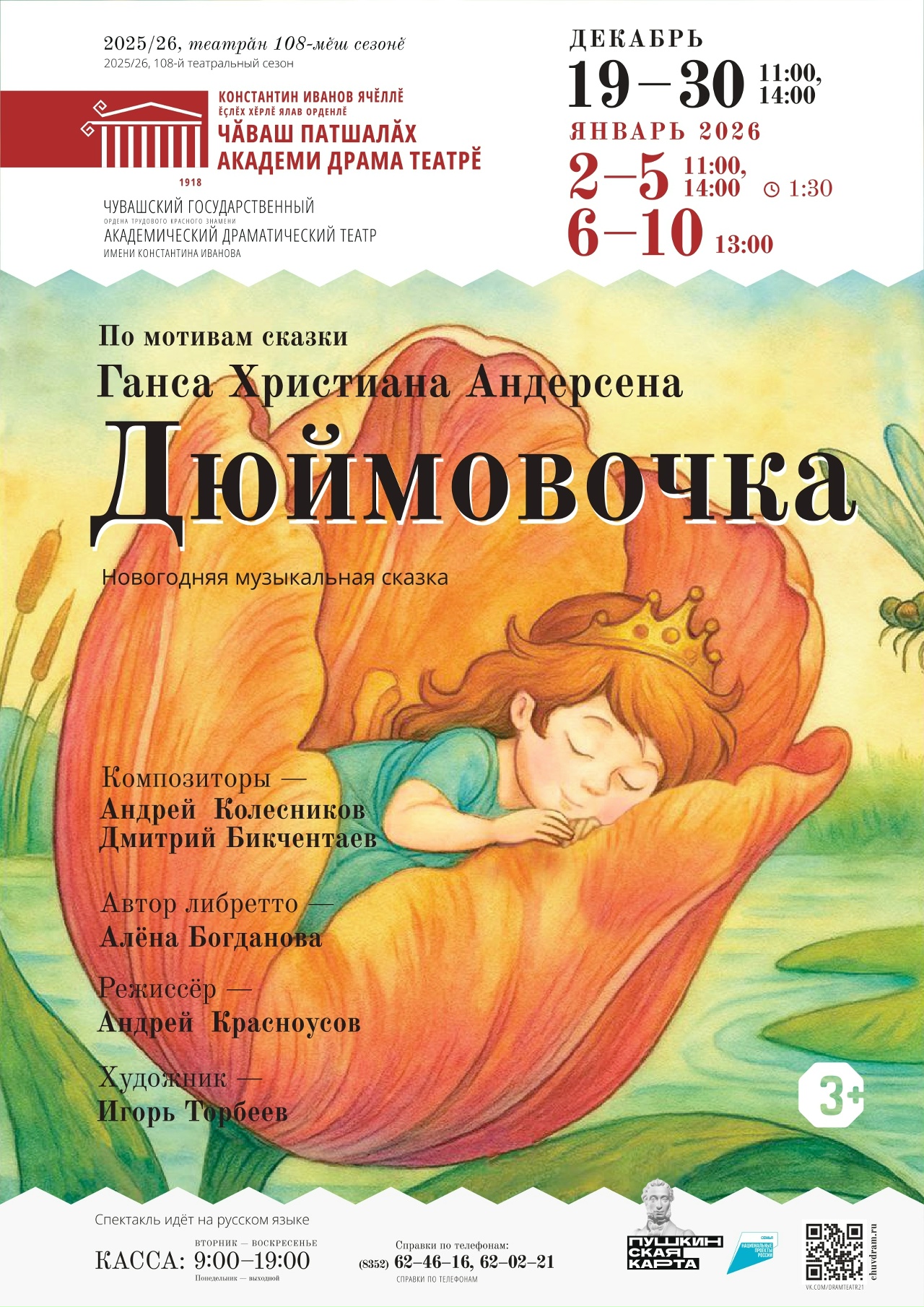С19 декабря по 10 января Чувашский драмтеатр приглашает на новогоднюю музыкальную сказку «Дюймовочка» (6+).