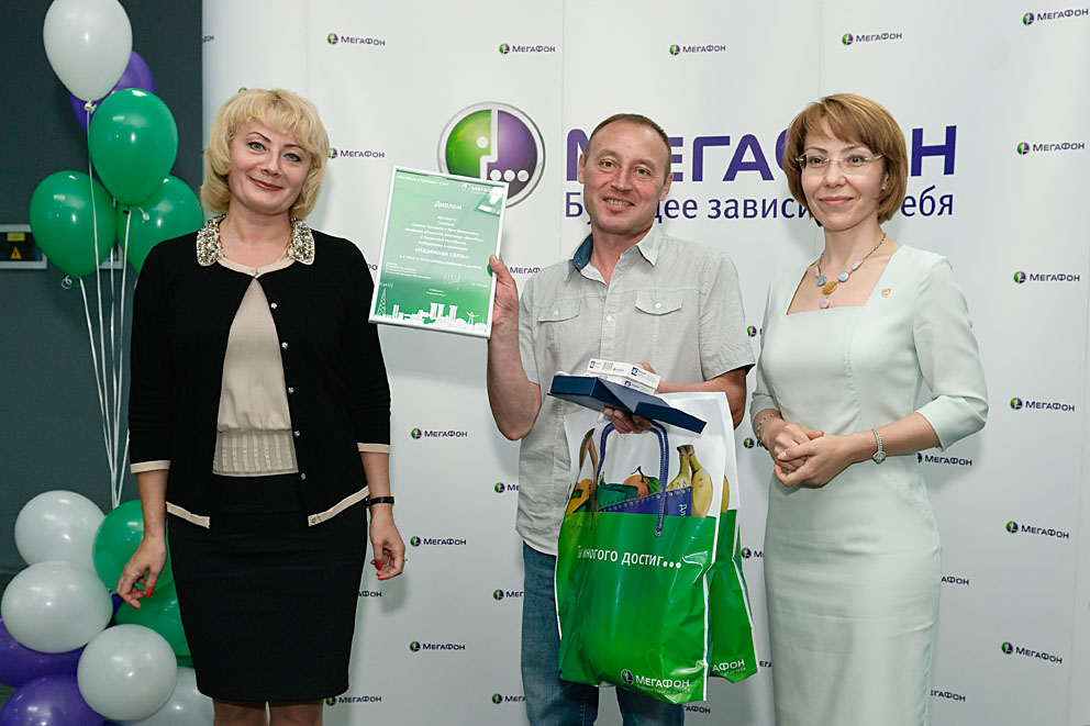 Кстати, именно модемы 4G были вручены самым активным абонентам компании. Не остались без подарков и те, кто с 2004 года остается верен своему оператору. В номинации «Надежная связь» были награждены Сергей и Инга Солины. Они стали первой семейной парой, подключившейся к «МегаФону» 17 августа 2004 года. На протяжении всех девяти лет они пользовались услугами компании. Получая диплом и хрустальную медаль из рук Елены Исайкиной и министра информационной политики и массовых коммуникаций Чувашии Валентины Андреевой, Сергей Солин признался, что за это время у семьи не возникло даже мысли перейти к иному сотовому оператору: «Мы частенько ездим в другие города. И даже в других регионах связь от «МегаФона» нас ни разу не подводила!».
