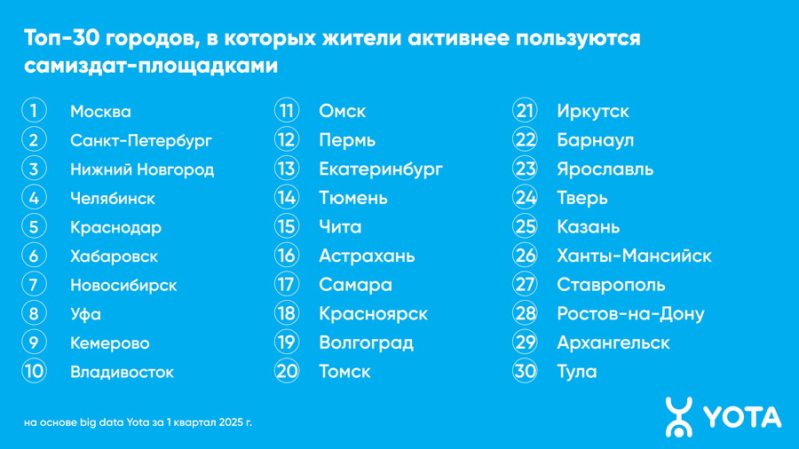 Инфографика предоставлена пресс-службой Yota (ООО «Скартел»).
