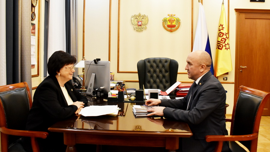 Председатель Кабинета Министров Чувашской Республики Сергей Артамонов провел рабочую встречу с директором регионального филиала Россельхозбанка Ириной Письменской. В ходе встречи руководитель филиала представила итоги работы банка в регионе за прошедший год и обозначила ключевые направления поддержки агропромышленного комплекса.