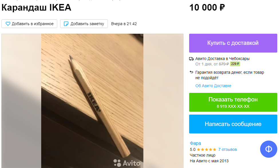 Нашлись среди горожан и более предприимчивые продавцы. Например, один из них предлагает купить простой карандаш за 10 тысяч рублей.