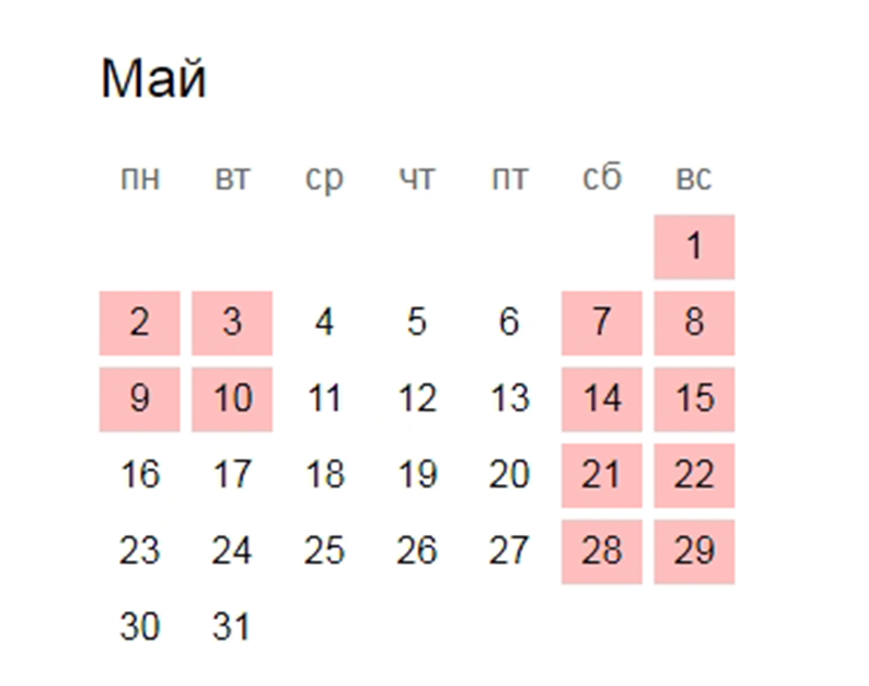 Согласно производственному календарю, утвержденному ранее, на майские праздники жители России в этом году должны отдыхать семь дней (если учитывать субботу, 30 апреля, то все восемь). 1 мая – государственный праздник День весны и труда, затем выходные 2 и 3 мая. 4, 5 и 6 мая – рабочие дни. Потом 7, 8, 9 (государственный праздник День Победы) и 10 мая – снова выходные. 3 и 10 мая стали выходными благодаря переносу с январских каникул. После празднования Дня победы мы выходим на работу в среду 11 мая. Затем – еще два рабочих дня 12 и 13 мая, и за ними обычные выходные.