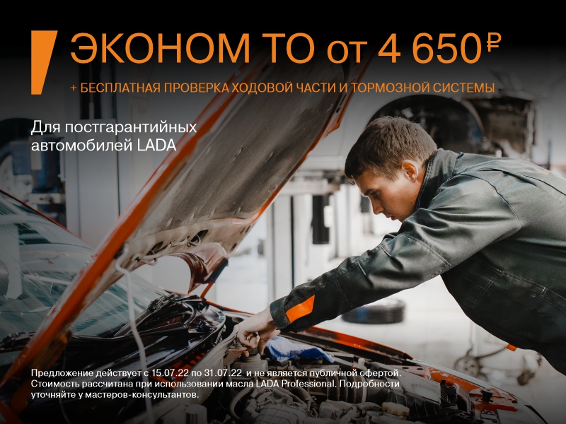 Предложения ограничены, действуют с 15 по 31 июля 2022 года и не являются публичной офертой. Цена рассчитана в случае использования масла LADA Professional. Подробные условия уточняйте у мастеров-консультантов АО "Чебоксары-Лада" по тел.: +78352763001.