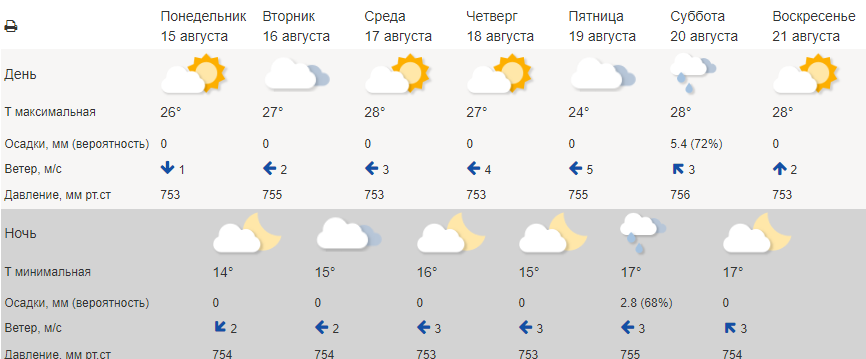 В пятницу, 19 августа, возможны кратковременные осадки. В выходные, когда Чебоксары будут отмечать свою 553-ю годовщину, обойдется без дождей, термометры покажут 22-27 градусов.