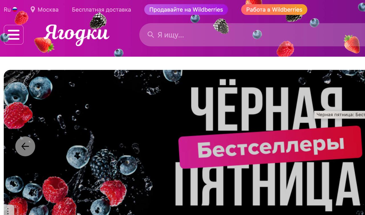 Wildberries вернул прежнее название сайта. Еще вчера в шапке вэб-сайта маркетплейса было название «Ягодки» (wildberries дословно переводится как «дикие ягоды»). Новое оформление с изображениями различных ягод на сайте сохранилось.