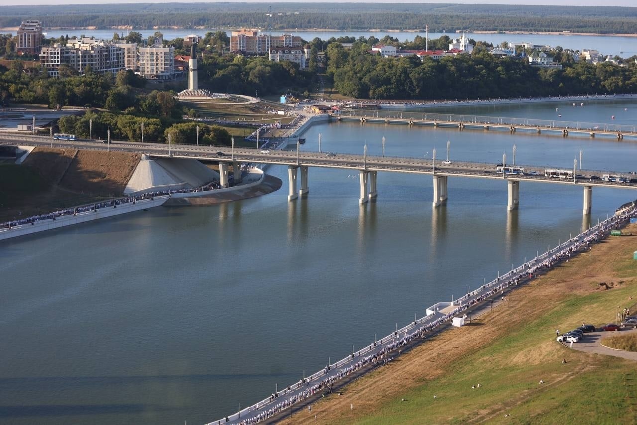 Из-за большого числа участников хоровод даже пришлось расширить. С расстановкой помогала самая многочисленная группа волонтеров за все время массовых мероприятий, которые проводились в Чебоксарах, – 350 человек.