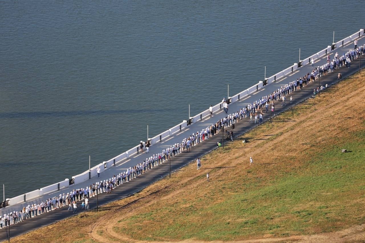 Участники выстроились, взявшись за руки, вокруг акватории Чебоксарского залива. Территорию предварительно разбили на 17 секторов. На них был организован отдельный вход для удобства и безопасности горожан. На каждом из секторов был свой ведущий, который помогал поддерживать праздничную атмосферу и координировать шествие хоровода.