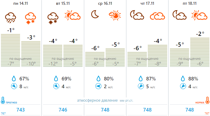 Понедельник, 14 ноября, можно считать началом метеорологической зимы. По прогнозам автора проекта «Погода в Чувашии» Владимира Михайлова, среднесуточная температура воздуха установится на отметке ниже ноля градусов. Днем в ближайшие 10 дней будет 1-6 градусов мороза, по ночам столбики термометров станут опускаться до минус 12.