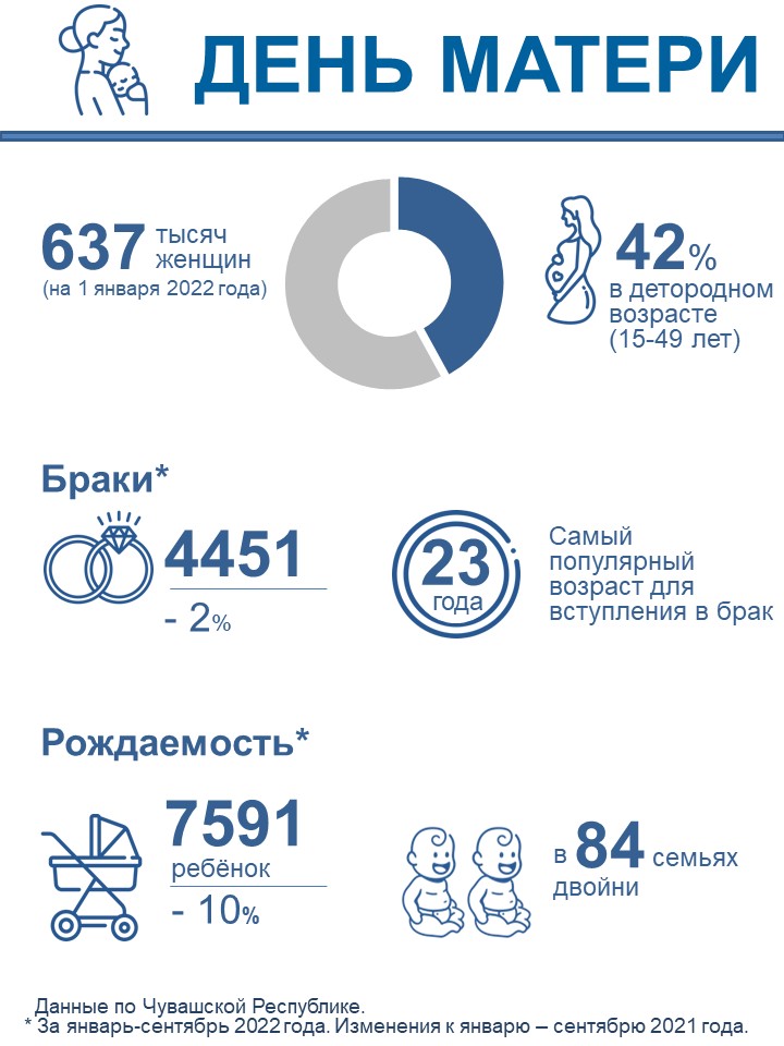 По статистике, на начало этого года женское население в Чувашии составляло 637 тысяч человек – от маленьких девочек до бабушек преклонного возраста. Из них 49% находятся в детородном возрасте. Таковым считается возраст от 15 до 49 лет.