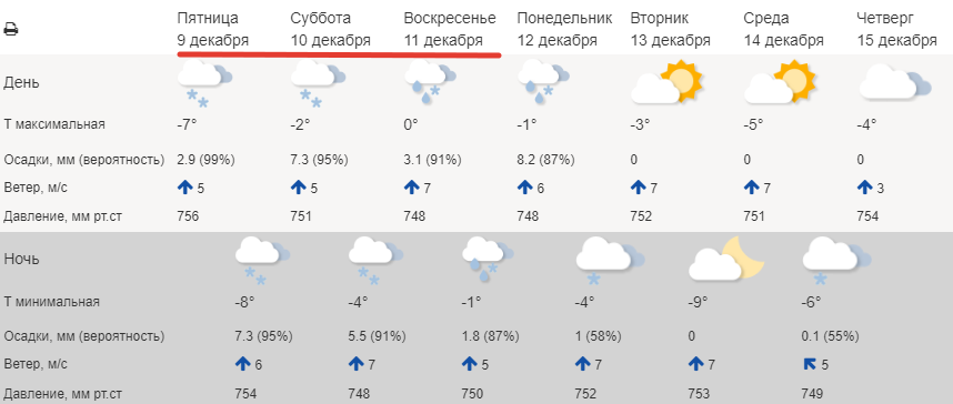 Прогноз погоды на пятницу и выходные с 10 по 11 декабря