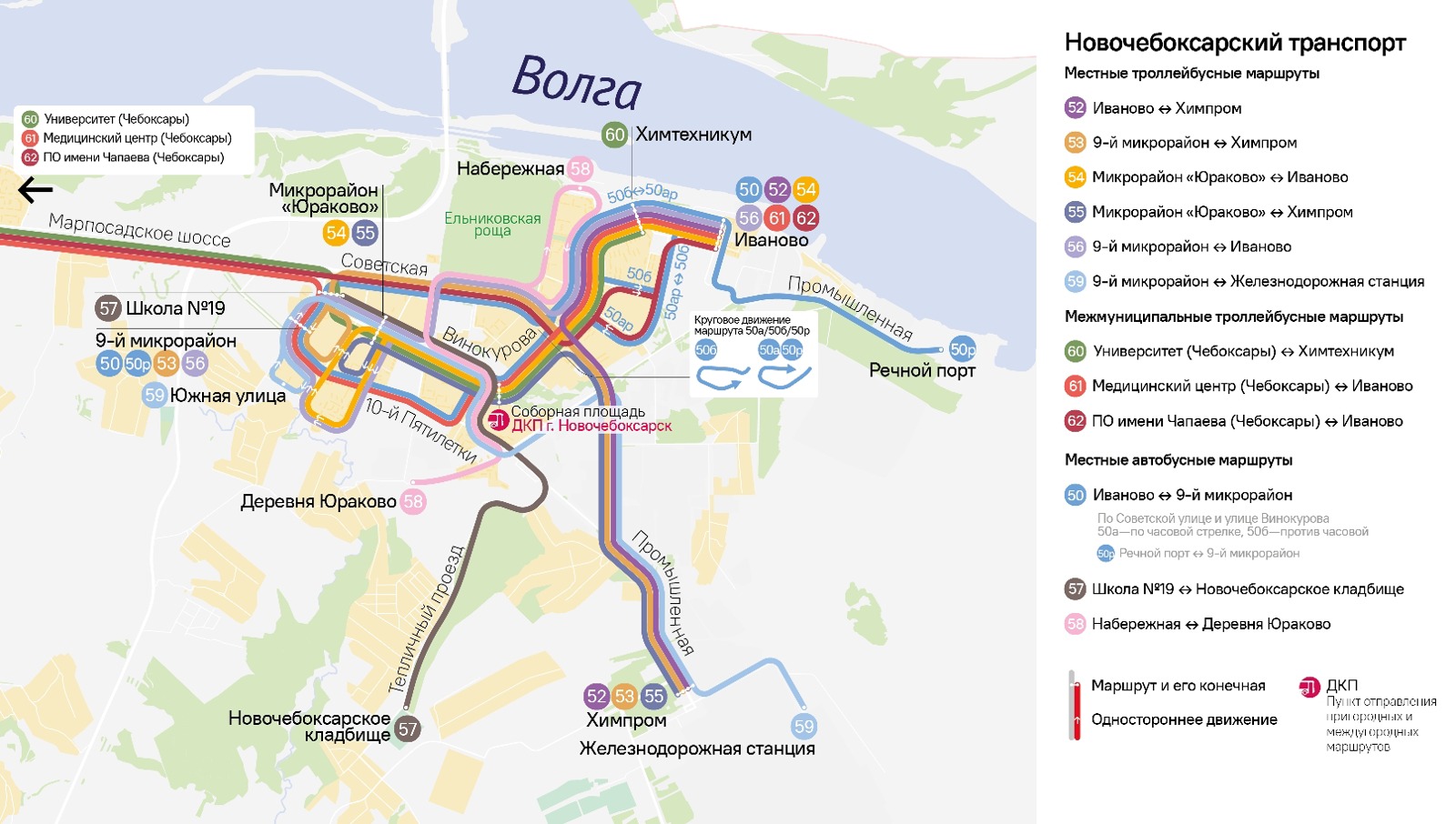 В рамках транспортной реформы планировался запуск трех межмуниципальных троллейбусных маршрутов №60 (Университет – Химтехникум), №61 (Медицинский центр – Иваново), №62 (ПО им. Чапаева – Иваново). Именно на последний маршрут Уфимский трамвайно-троллейбусный завод должен был до 1 декабря поставить в Чувашию 21 троллейбус с автономным ходом. Запуск маршрута планировался 2 января 2024 года. Теперь же их поставка ожидается лишь в I квартале следующего года.