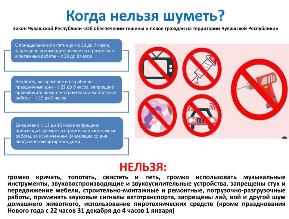 Закон Чувашской Республики от 30.11.2023 N 91 "Об обеспечении тишины и покоя граждан на территории Чувашской Республики" вступает в силу в Чувашии с 1 марта, напомнили в Госжилинспекции Чувашии. А его наршение влечет административную ответственность.