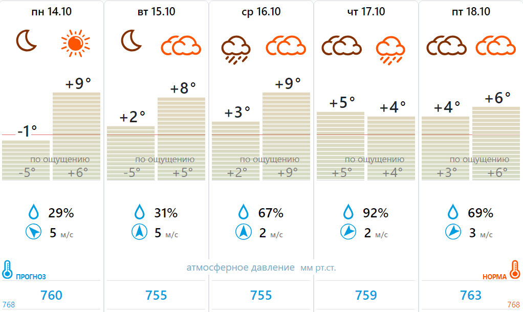 Синоптики дали прогноз погоды с 14 по 20 октября