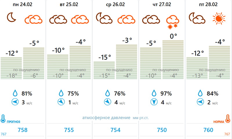 К концу недели Чувашия окажется под влиянием антициклона, что обеспечит относительно спокойную и сухую погоду. В последние дни Масленицы осадков не ожидается, ветер ослабеет, а солнце будет чаще появляться из-за облаков. Атмосферное давление поднимется до 755 мм рт. ст., а температура будет колебаться в пределах –3...–5 градусов днём и до –15 градусов ночью.